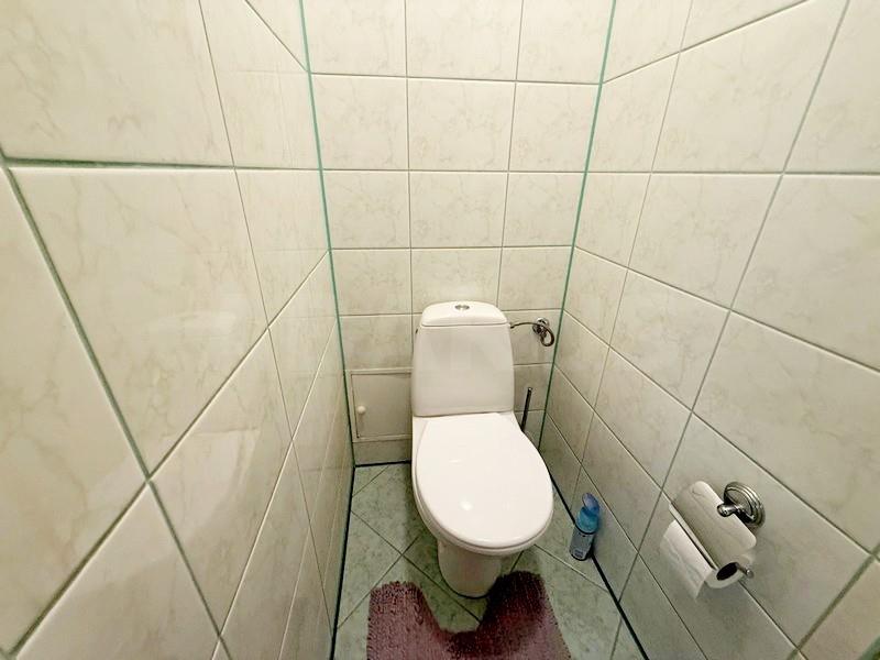 Oddzielna toaleta, na ścianach glazura, na podłodze terakota.
