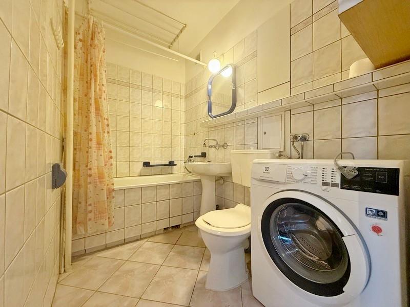 Łazienka z wanną, na ścianach glazura, na podłodze terakota.